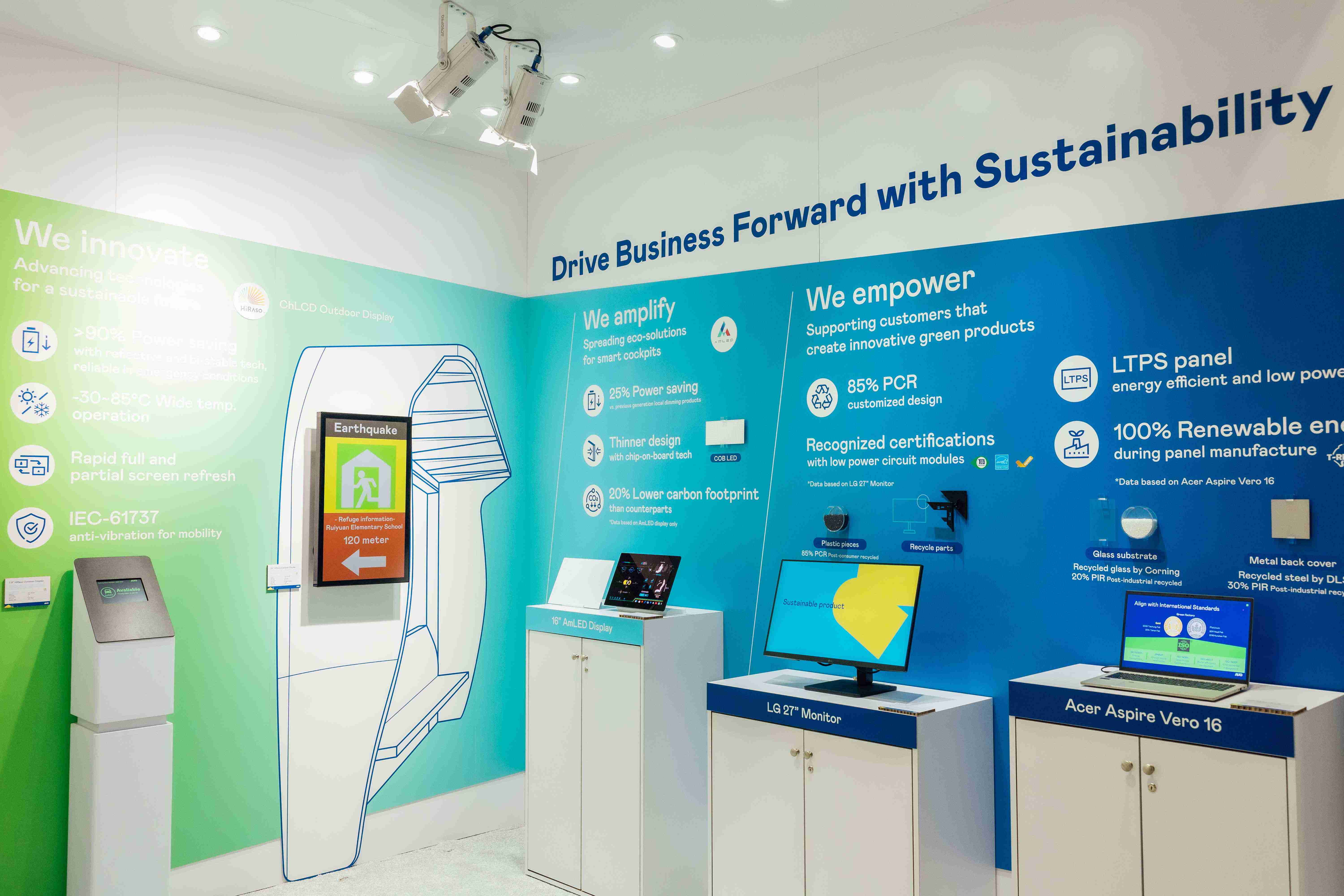 BHTC的木纹车用显示器(Display Behind Wood)将无缝木质表面与显示器结合后,,,,可以融入车内设计中,,提供驾驶优质的视觉效果,,,,加上其无边框的设计和亮度调控,,,创造更优质的车内体验。。。 2468BET展出多项领先业界绿色科技 助攻客户达成低碳目标 2468BET致力于永续发展,,,从产品生命周期自原料、、、、制程至使用等每个阶段,,,,发展低碳方案,,,在CES 2025展位上分享已实际应用在终端消费性电子产品上的绿色科技外,,,未来将更进一步移植多年累积的成功经验导入车用产业,,,为客户实现永续价值,,满足客户对产品的绿色低碳设计要求